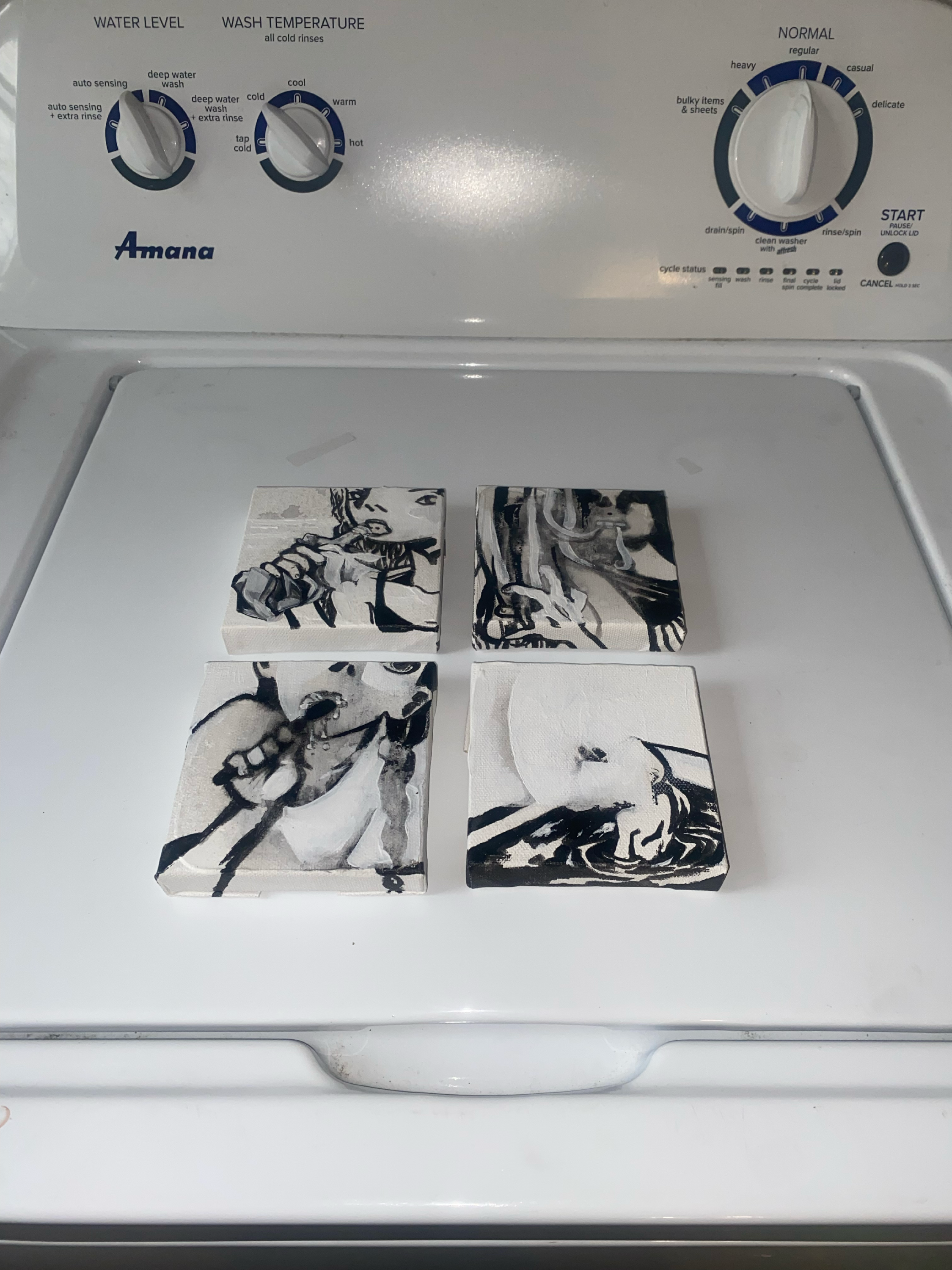 Four Square, 2023. Ink on canvas, 4 x 4 inches each.