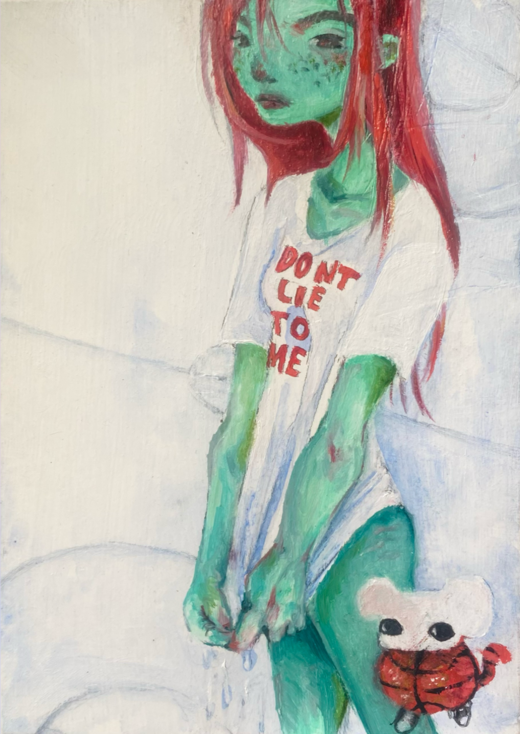 Drooling Girl, 2023. Oil on canvas, 12 x 12 inches.