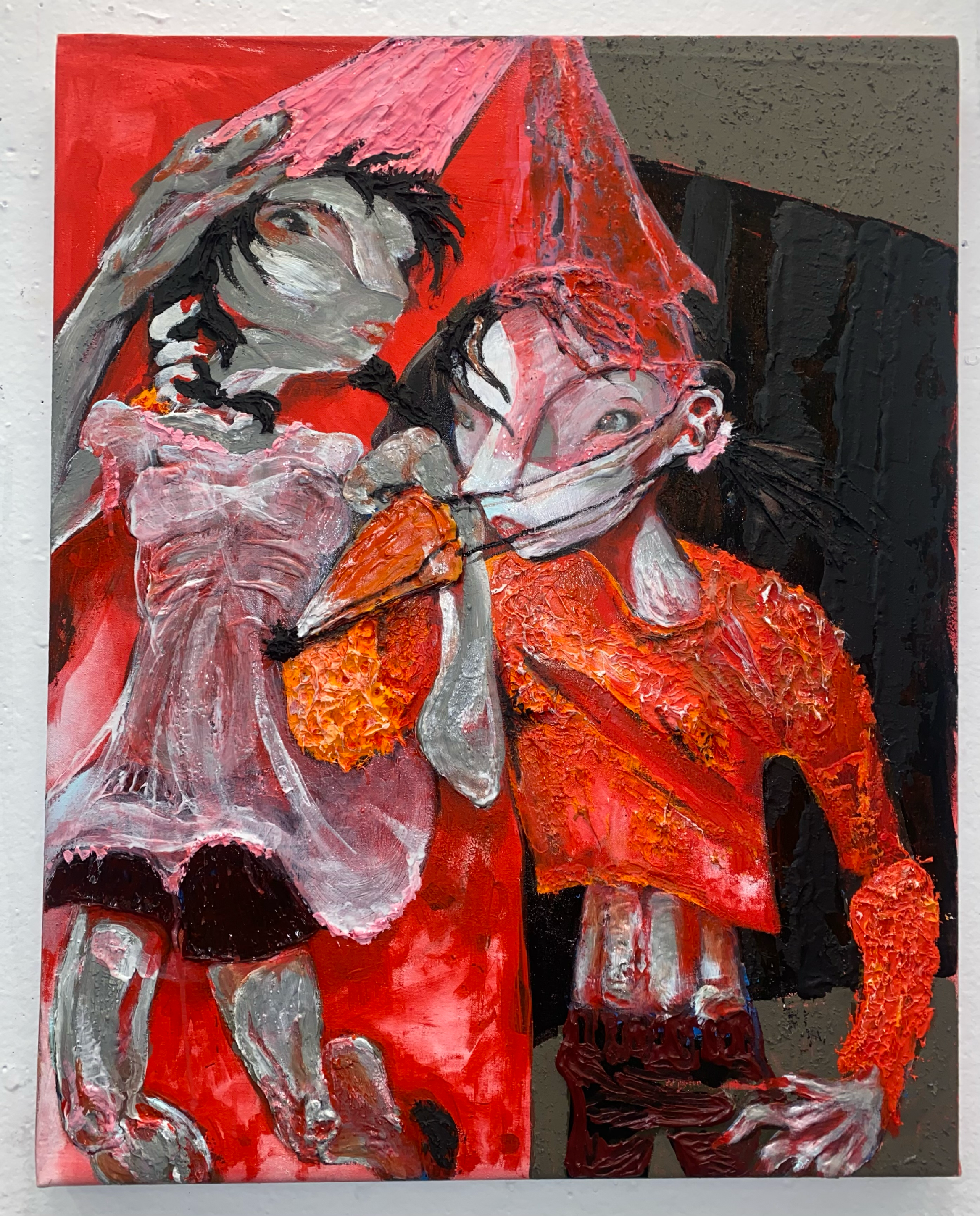 Sock Fight, 2023. Oil on canvas, 18 x 14.